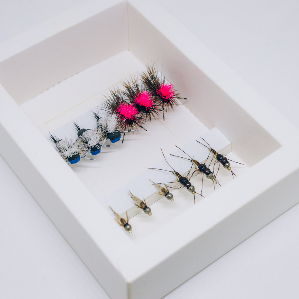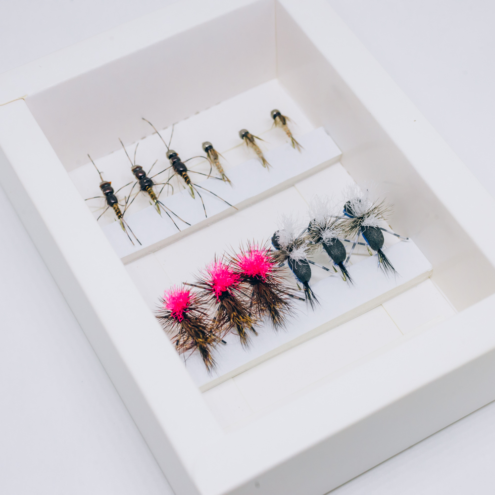 Selection of flies if you’re planning a trip over to New Zealand. Can be used together as a dropper rig. Nymphs in size 14 and dries in size 12.