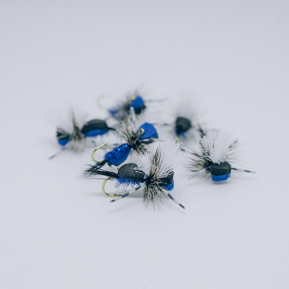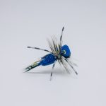 A blowfly version of the Hippy Stomper. This particular pattern tied on slightly smaller hook, with dubbing body instead of tinsel, that way creating more rounded silhouette to mimic the blowfly. Can’t go wrong tying on this fly when trout are munching on horseflies and other terrestrials. Size 12.