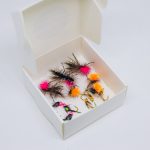 Collection of hi-vis dry flies and hot spot nymphs that can be used as a dropper rig. Perfect combination for a murky water.