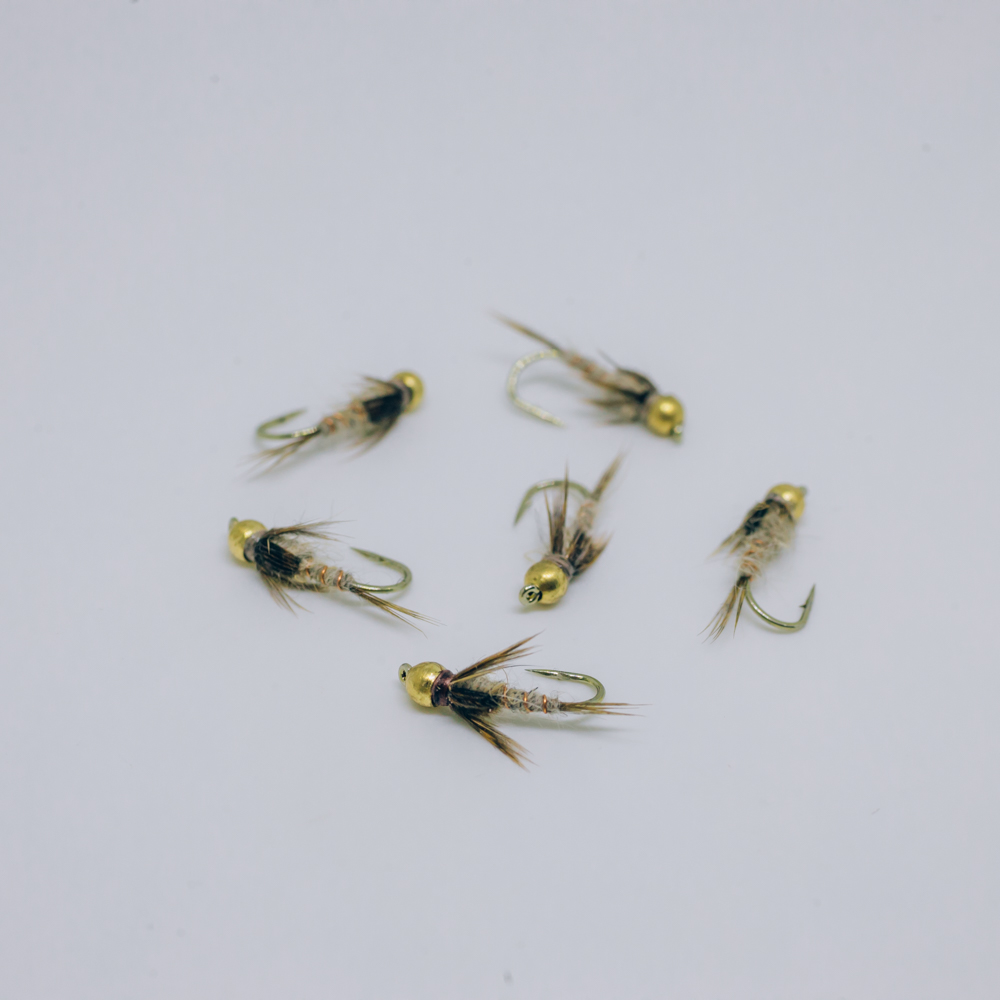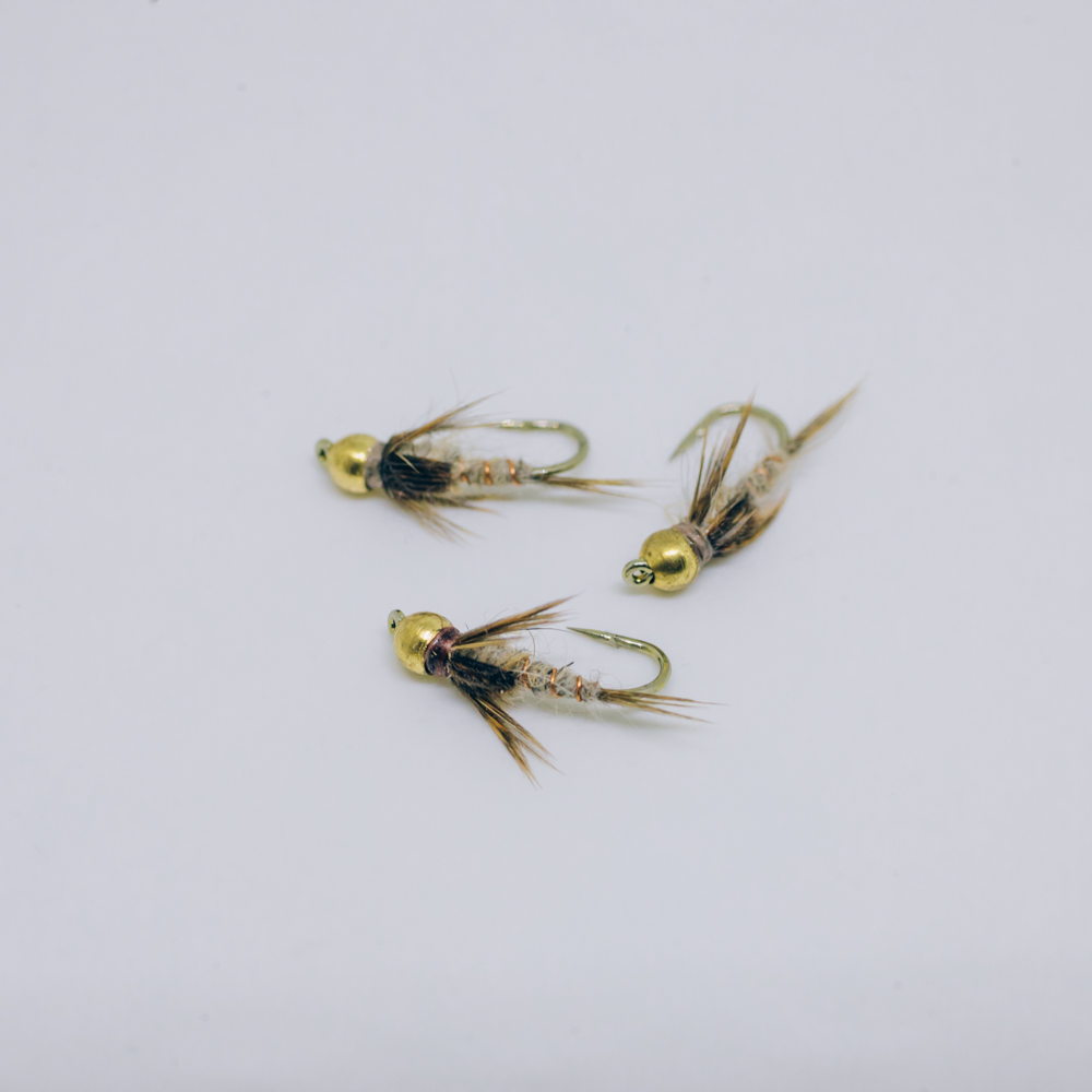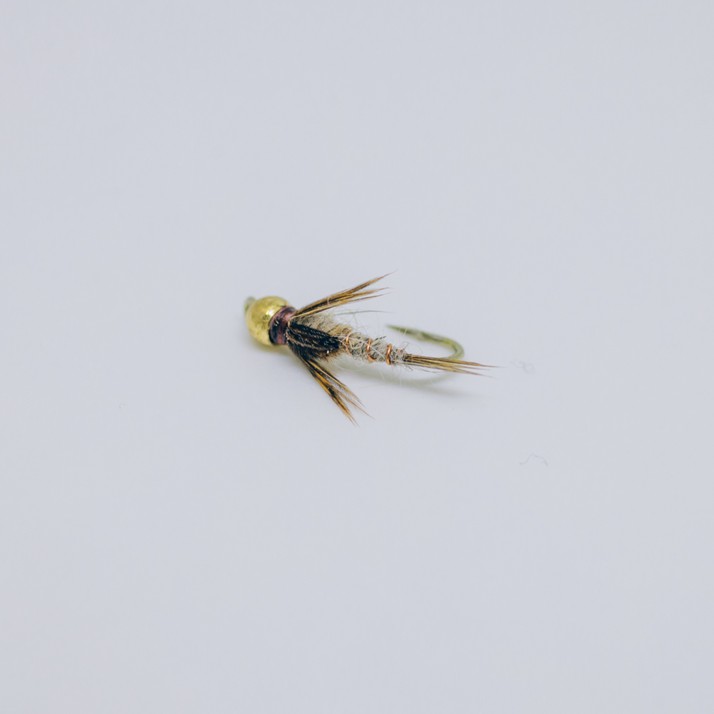 The gold bead Hare’s Ear nymph is a proven, all-purpose fly pattern that blends lifelike movement with added weight. The gold bead head helps it sink quickly into the strike zone while catching light to attract fish, making it especially effective in deeper or faster water. Its rough, spiky body made from hare’s mask fur gives it a “buggy” appearance that can imitate a wide range of aquatic prey, from mayfly nymphs to small crustaceans. Reliable and versatile, it’s a staple pattern that consistently produces results in many fishing conditions. Size 14.