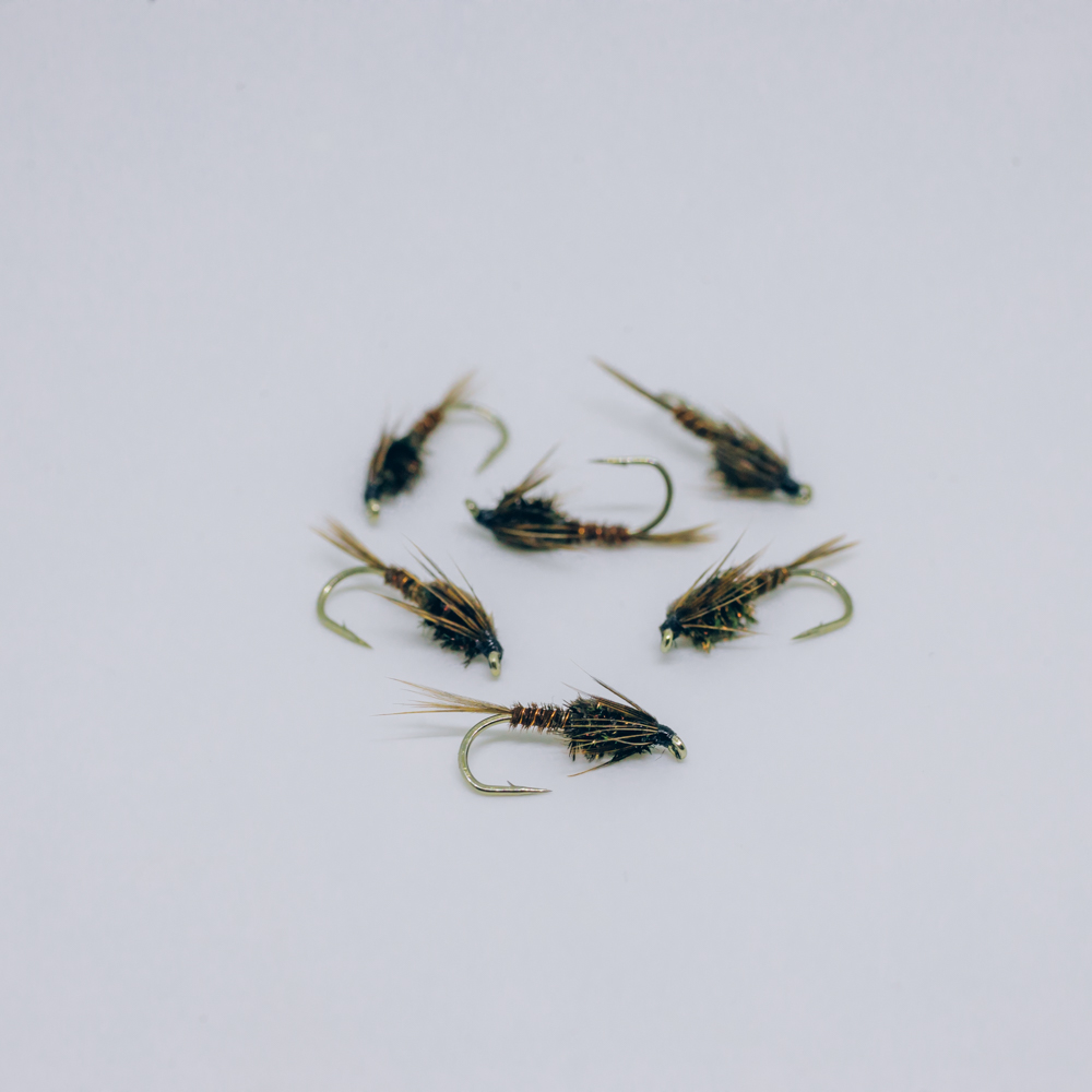 The unweighted Pheasant Tail Nymph is a timeless fly pattern that closely imitates slender mayfly nymphs found in many rivers and streams. Without added weight, it sinks slowly and drifts naturally, making it perfect for shallow water or finicky fish that are easily spooked. Its slim body, crafted from pheasant tail fibers and ribbed with fine wire, creates a subtle, realistic profile that trout readily recognize as food. Effective in a wide range of conditions, it remains a must-have pattern in any fly angler’s box. Size 14.