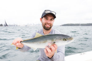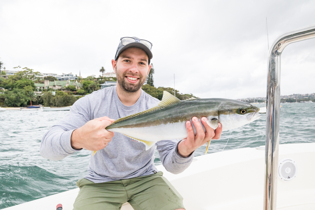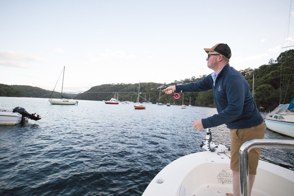 Had an awesome Saturday morning flyfishing the beautiful Sydney Harbour. Big thanks and a shoutout to a local guide Ben Foster from the Endless Session that took us out on the water despite the poor weather forecast. It got quite windy and rainy at times, but we managed to find couple sheltered bays on the other side of the harbour that apparently held some fish. Just blind casting near the boats and markers for an hour wasn’t giving us too much of a result. So our guide decided to move on and look for some water surface activity nearby. Fortunately just around the corner from the spot we were blind fishing we noticed some birds circling around and instantly some splashes and then some more splashes appeared. Almost in no time those splashes turned into boiling water looking thing. And this is where madness starts – birds and fish go after baitfish, fishermen go after fish, wind knots go after fishermen and so on. It didn’t take too long to land our first specimen of the day which was a pretty angry tailor for my mate Dan. That toothy critter gave a decent bend to his 8weight that’s for sure. Then he landed a Kahawai (Australian Salmon that probably gets a name form the way it tends to keep jumping out of the water when hooked), and then more and more fish got reeled in by a both of us. By the end of the session we managed to land a so called Sydney Harbour Grand Slam – 3 different species on fly. We actually landed 5 species which were Kingfish, Australian Salmon, Bonito, Tailor and of course a Yakka (yes that counts as well). So overall a pretty damned good day on the water catching up with an old friend, hooking some fish and sharing a few laughs. Does Saturday mornings can get any better than this?
